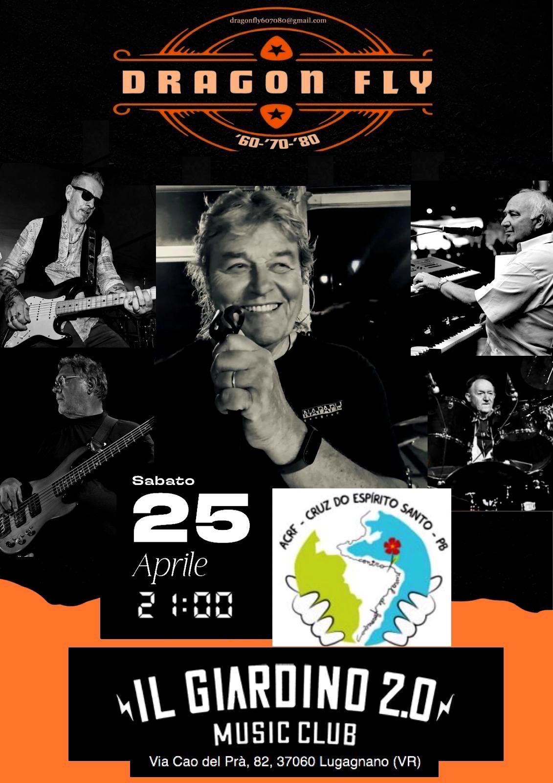 Ringraziamo i Dragon Fly per averci dato nuovamente la loro disponibilità per questa ennesima serata a scopo benefico a favore del centro Rural de Formacao in Brasile. I Dragon Fly band ormai storica con il loro repertorio che trova spunto negli anni 60-70-80, acccompagnano il pubblico in un viaggio musicale fatto di emozioni passate e presenti e ricordi indelebili. Ingresso 15 euro con consumazione. Chi desidera può prenotare un risotto alle ore 20.